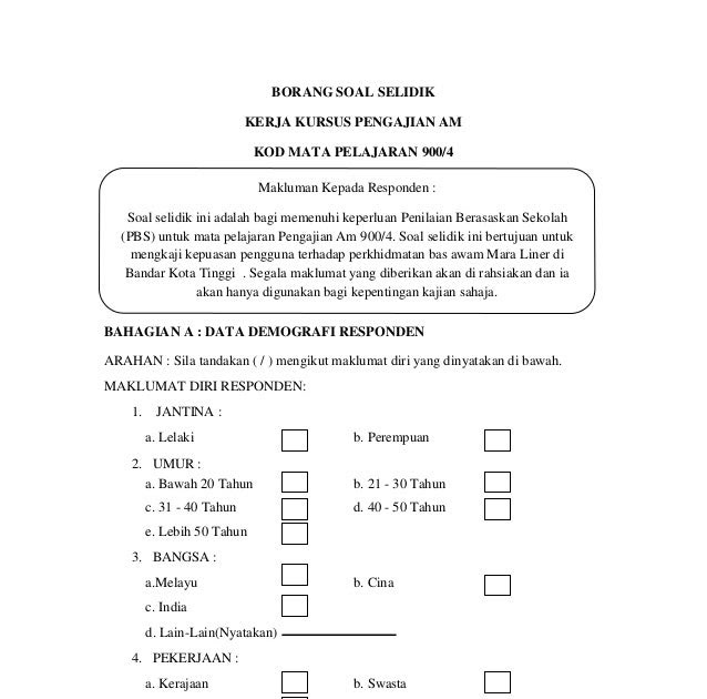 Contoh Soalan Soal Selidik Sisa Domestik - Soalan Ap via soalanap.blogspot.com